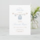 Celebrate the arrival of a sweet baby boy with this watercolor baby shower invitation featuring soft blue baby clothes on a twine clothesline. Simple, classic, and editable for any modern or rustic baby shower celebration.