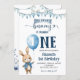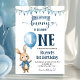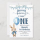 Blue Little Bunny First Birthday Invitation