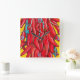 My original, copyrighted painting of a red chile ristra with playful blue lizards is detailed on this square clock, and would be a great accent in a southwest kitchen. There are four numbers in a turquoise shade. I also sell several coordinating items in my Zazzle store, www.zazzle.com/BonneIdeeArt*