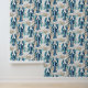 Blue Lobsters and Seashells Coastal Wallpaper