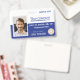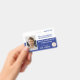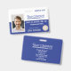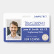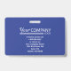 Bright blue and white facility entry badge with a bar code on back is ideal for department specific clearance. Easily upload multiple logos and an employee photo. This can hang on a matching lanyard that also holds a company key card. This company badge is versatile for royal blue, navy blue, or blue and grey company lanyards. Perfect for engineering, healthcare, or law enforcement. Perfect for government facilities where staff have different clearances.
