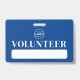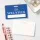 A simple and professional volunteer badge design, perfect for events, businesses, or organizations that rely on volunteers. "Volunteer" is prominently displayed at the top, with space below for the event or business name and date.