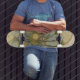 Blue Lotus Flower on Tan Background with Writing Skateboard