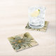 Blue Lotus Flower on Tan Background with Writing Square Paper Coaster