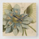 Blue Lotus Flower on Tan Background with Writing Square Wall Clock