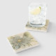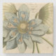 Blue Lotus Flower on Tan Background with Writing Stone Coaster