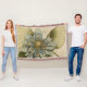 Blue Lotus Flower on Tan Background with Writing Throw Blanket