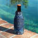 Blue Lotus Mandala Mirror Art by SpaceCake printed on a tall bottle coozie.