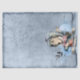 This design is inspired by original artwork from Alice's Adventures in Wonderland by Lewis Carroll. The Mad Hatter with light blue flowers is at the tea party on a vintage blue background. Perfect for decoupage art, paper crafts, or gift wrap.