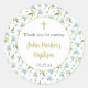Blue Magnolias baptism thank you sticker is perfect for thank you favours! The design features watercolor blue magnolias and green botanicals with a small green cross, room to say "thank you for coming", the child's name and the date of the baptism or christening. See collection for coordinating items.