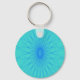 Blue mandala rays on cyan keychain