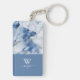 An accent keychain in dark blue, white and light blue marble liquid ink colours. The design is a dreamy romantic and elegant design with gold and silver traces like the coastal sea breeze shimmers. It looks like an abstract marmor stone texture and fluid lava at the same time. This design fits perfect in coastal homes and makes the breeze come into your room.