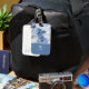 An accent luggage tag in dark blue, white and light blue marble liquid ink colours. The design is a dreamy romantic and elegant design with gold and silver traces like the coastal sea breeze shimmers. It looks like an abstract marmor stone texture and fluid lava at the same time. This design fits perfect for coastal travel and makes the breeze come into your room.