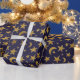 Blue Marine Golden Stars and Moon Sky Wrapping Paper