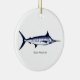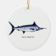 This billfish ornament celebrates blue marlin. The blue marlin is one of the world's largest sport fish, with trophy class fish occasionally exceeding 1000 pounds. Blue marlin use their bills to stun fish, squid, and other prey.