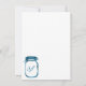 Ces invitations de mariage rustiques ont un design de bocal en maçon bleu avec le nom de la mariée et du marié accentué en bleu également. L'arrière de l'invitation de mariage campagnard a un petit pot de maçon dans le coin inférieur avec le mot "Amour" dans le script. Ajoutez simplement votre propre libellé de faire-part de mariage à ce modèle invitation mariage campagnard.