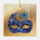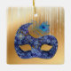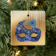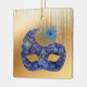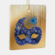 Blue Masquerade Mask and Peacock Feather on Gold Ceramic Ornament