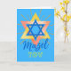 Mostly blue, Mazel Tov, congratulate someone for all of their hard work. Great for a Bar Mitzvah or general congratulations. Bright, bold, and colourful design with a Star of David. Art, image, and verse copyright © Shoaff Ballanger Studios, 2022.