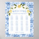 Experience the romance of our elegant seating chart poster, inspired by the timeless beauty of Italian Mediterranean porcelain. Featuring a captivating design with watercolor lemon branches adorning a boho arch and complemented by a blue porcelain tiles pattern, this seating chart accommodates up to 12 tables. Let this charming poster add a touch of sophistication to your wedding decor. Explore our collection for more exquisite wedding stationery options to elevate your special day.