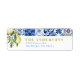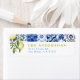This elegant return address label features a white background with blue Mediterranean tiles and lemons/citrus in watercolor. Personalize it for your needs. You can find matching products at my store.