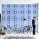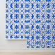 Blue Mediterranean watercolor tile pattern Wallpaper