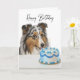 This funny birthday card features a beautifully illustrated Shetland Sheepdog caught in the act of taste-testing a colorful birthday cake with the playful message: “I inspected the cake. You’re welcome.”