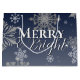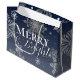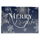 Grand Sac Cadeau Joyeux bleu et flèches de neige brillantes Noël