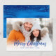 Blue Merry Christmas Script Overlay Holiday Photo Card