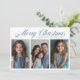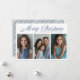 Blue Merry Christmas Three photo design Holiday Card