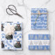 Celebrate the season with this white and blue Merry Happy Everything Chrismukkah holiday wrapping paper in a cute assortment of designs that include stylish typography and a photo template layout. Perfect for interfaith families, these custom wrapping paper sheets celebrate Hanukkah and Christmas together in three fun blue and white designs. Sheet One features a chequerboard pattern with room for you to upload your photo which will appear on the gift wrap bordered in medium cornflower blue. MERRY and HAPPY in a matching blue chunky stylized font are scattered among your child's or family's picture along with random polka dots on the white background. Sheet Two is a repeat typography pattern of MERRY HAPPY EVERYTHING in white on the pretty blue background. Sheet Three is a pattern of faux silver Menorahs and Christmas trees with each row alternating between bold white and cornflower blue stripes. Embrace the holidays with this cute blue, white and silver personalized wrapping paper set for Chrismukkah as you celebrate Christmas and Hanukkah together.