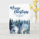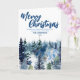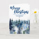 Blue Merry xmas tree forest Modern raindeer Holid Card