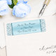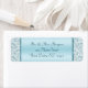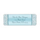 The blue metallic background is edged on each side with glitter damask on these trendy wedding return address labels. The name and address is written in a clean elegant script font.