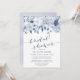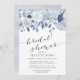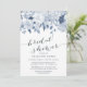 Elegant and modern floral bridal shower invitation features a bouquet of watercolor roses, peonies and hydrangeas in soft shades of blue, with lush green botanical leaves and eucalyptus. Personalize with your bridal shower details in elegant smoky blue lettering accented with handwritten style calligraphy.