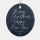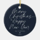 Blue Minimalist Modern Script Merry Christmas Ceramic Ornament