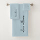 Blue Minimalist Script Signature Monogram Bath Towel Set