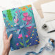 A girly elegant hand paint floral artwork, filled with pink, teal, blue, mint, yellow and white colors small garden spring flowers, various green shades foliage design, on a classic blue and neon mint color trend gradient background. This whimsical, undersea, ocean feel, romantic, modern, feminine style fashion, vintage ditsy floral inspired design, original pattern, pretty hand painted floral design is perfect for summer, beach wear, stylish home decor, celebrations and special days theme decorations.