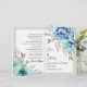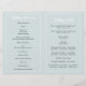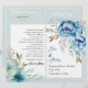 Blue and mint green watercolor flowers floral wedding program. It features bouquets of flowers in blue and mint green tones on the corners while your text is placed in a white frame with a border. Fold it in the centre to have a folded program.