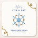 Blue Modern Ahoy Nautical Boy Baby Shower Square Paper Coaster