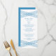 Simple and elegant Modern Deco Wedding Menu Card with a striped criss-cross hatched art deco design in blue. This classic menu card can be easily customized with your wedding details. For more customization options, click on the Customize It button.