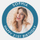 Blue Modern Elegant Happy 21st Birthday Photo Classic Round Sticker