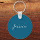 Blue Modern Elegant Plain Simple Professional Name Keychain