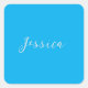 Blue Modern Elegant Plain Simple Professional Name Square Sticker