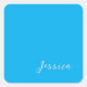 Blue Modern Elegant Plain Simple Professional Name Square Sticker