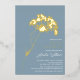 Beautiful baby shower invitation featuring a real foil flower stem set on a powder blue background. The back features an elegant coordinating floral back for an extra special touch.