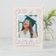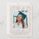 This trendy graduation card features a bold, minimalist typographic design using the word "Grad". A photo frame with a white border is placed over the lettering, allowing just enough the word to be visible and legible. There is space for a custom message beneath the typographic design. The back side of the card features a coordinating graduation cap pattern. The colours of this card are fully customizable, so you can keep the colours as is, or change them to reflect your school's colours. The design is perfect for a high school or college graduation!