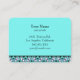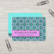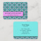 Fun business card in bright blue with white leaves and pink accents