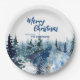 Blue Modern Merry xmas trees forest raindeer Paper Plate