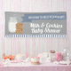 An adorable Modern Milk and Cookies Striped banner sign that's great for a baby shower. The colours are grey, blue, and white. It's a modern flair. The design has a stack of chocolate chip cookies with a bottle of milk.