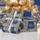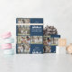 Navy blue natural modern elegant traditional contemporary muted colours beige, black and white multi photo collage holiday Christmas Santa Reindeer unique persona lized holiday gift wrap.