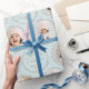 Blue Modern Script Merry Christmas Family 6 photo Wrapping Paper